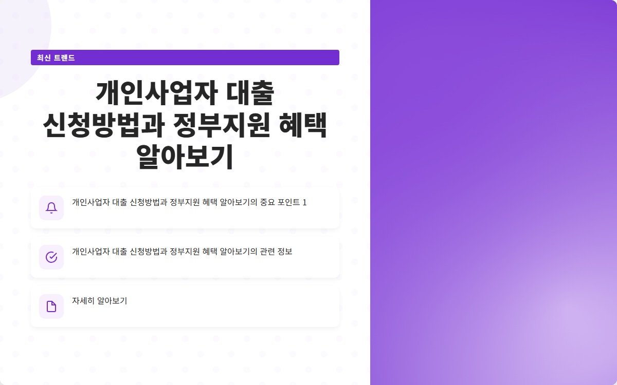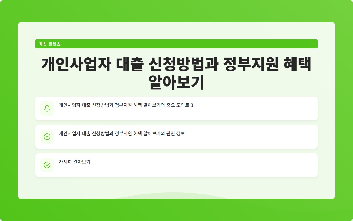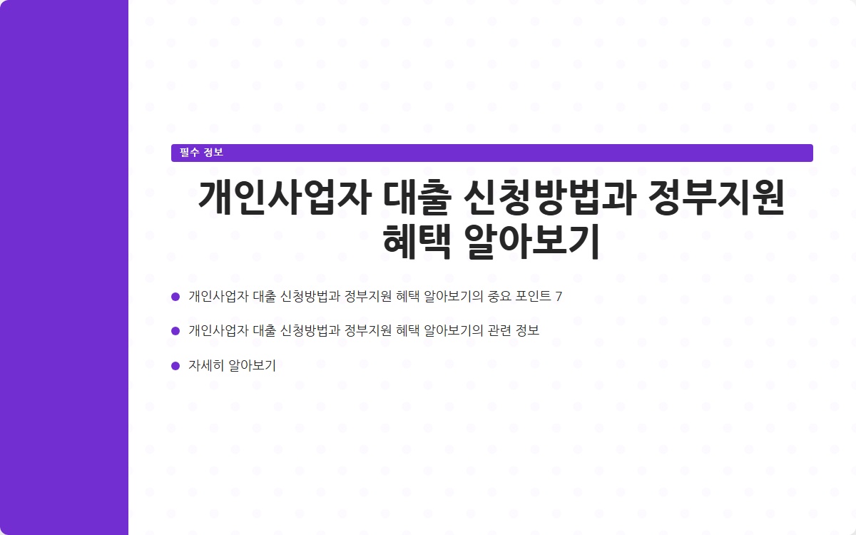 이 글이 개인사업자로서 대출 신청하는 데 도움이 되길 바랍니다. 성공적인 사업 운영을 기원합니다!