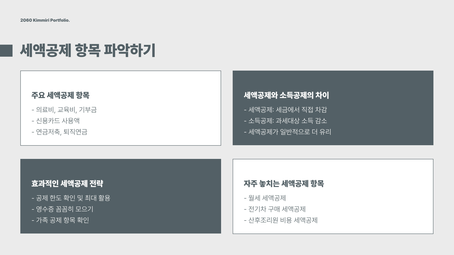 - 소득공제와 세액공제를 이해하고 활용해야 한다.