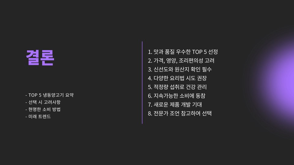 냉동양고기는 다양한 요리로 변신할 수 있는 매력적인 식재료입니다. 이번 포스트에서는 냉동양고기 TOP 5를 통해 맛과 퀄리티가 뛰어난 제품들을 소개했습니다. 각 제품은 그 자체로 훌륭한 요리 재료가 되며, 여러분의 식탁에 즐거움을 더할 것입니다. 냉동양고기를 선택할 때는 품질과 가격을 잘 비교하여 가장 적합한 제품을 선택하세요.