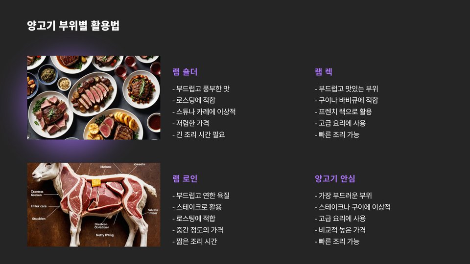 • 양고기의 다양한 부위 활용 가능