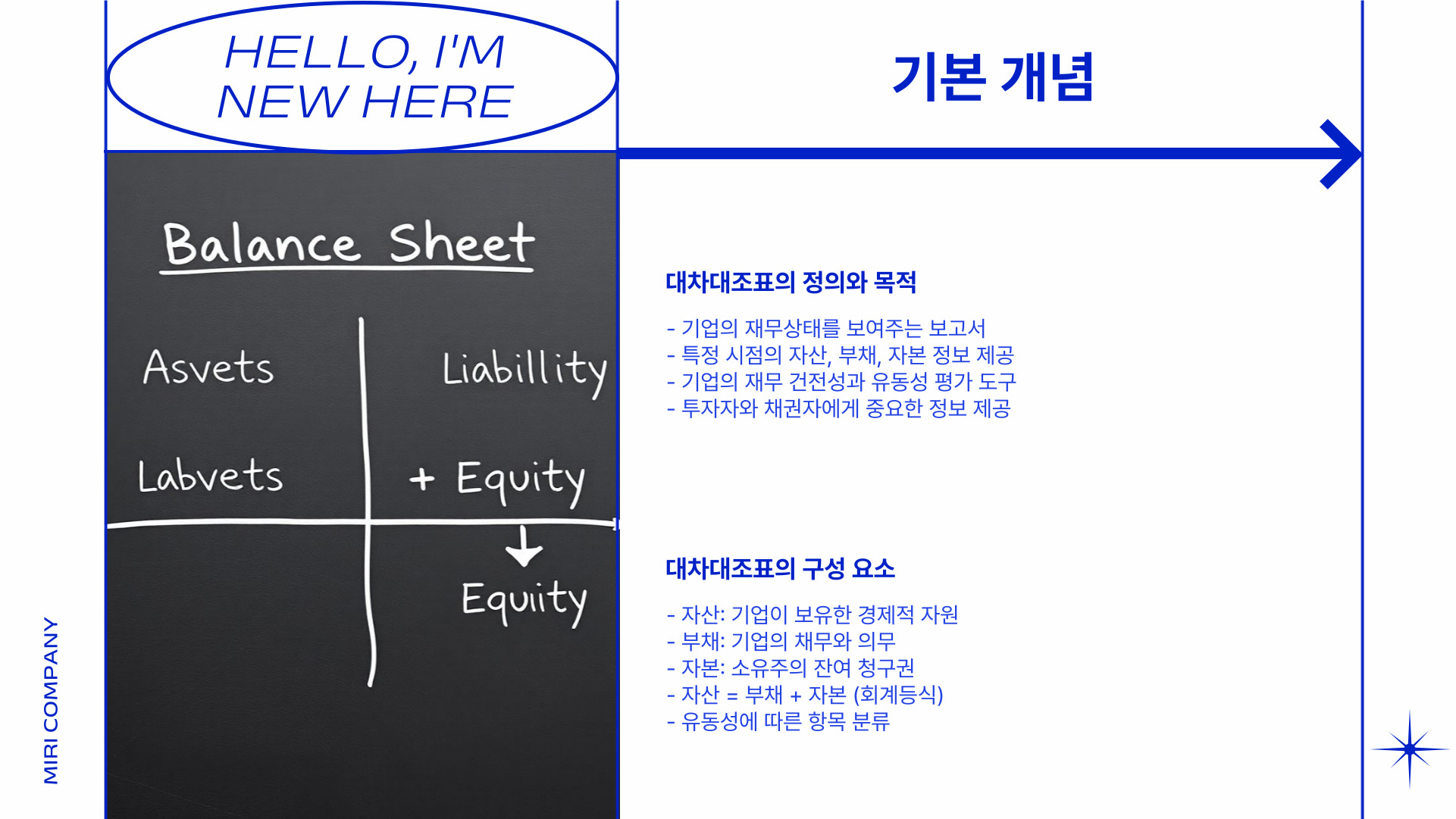 - 대차대조표는 자산, 부채, 자본으로 구성되어 있습니다.