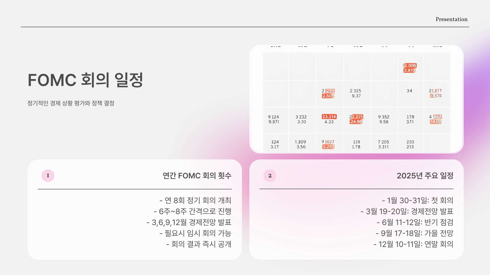 • FOMC 회의 일정 및 경제 지표 발표 일정 확인 필수
