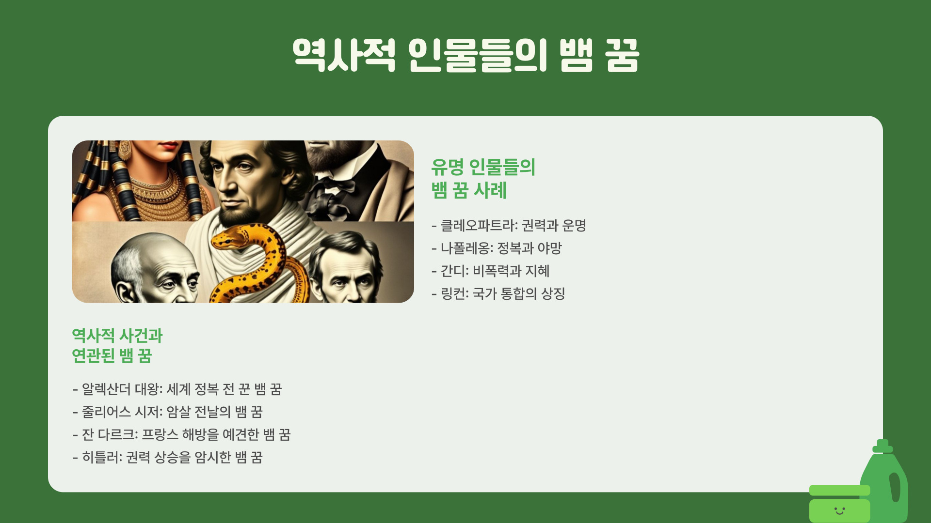 이상으로, 뱀 나오는 꿈의 다양한 의미와 해석 방법에 대해 알아보았습니다. 꿈은 개인의 심리 상태나 환경을 반영하는 중요한 요소이므로, 꿈을 잘 해석하고 이해하는 것은 자신을 더욱 잘 알게 되는 좋은 기회가 될 수 있습니다.