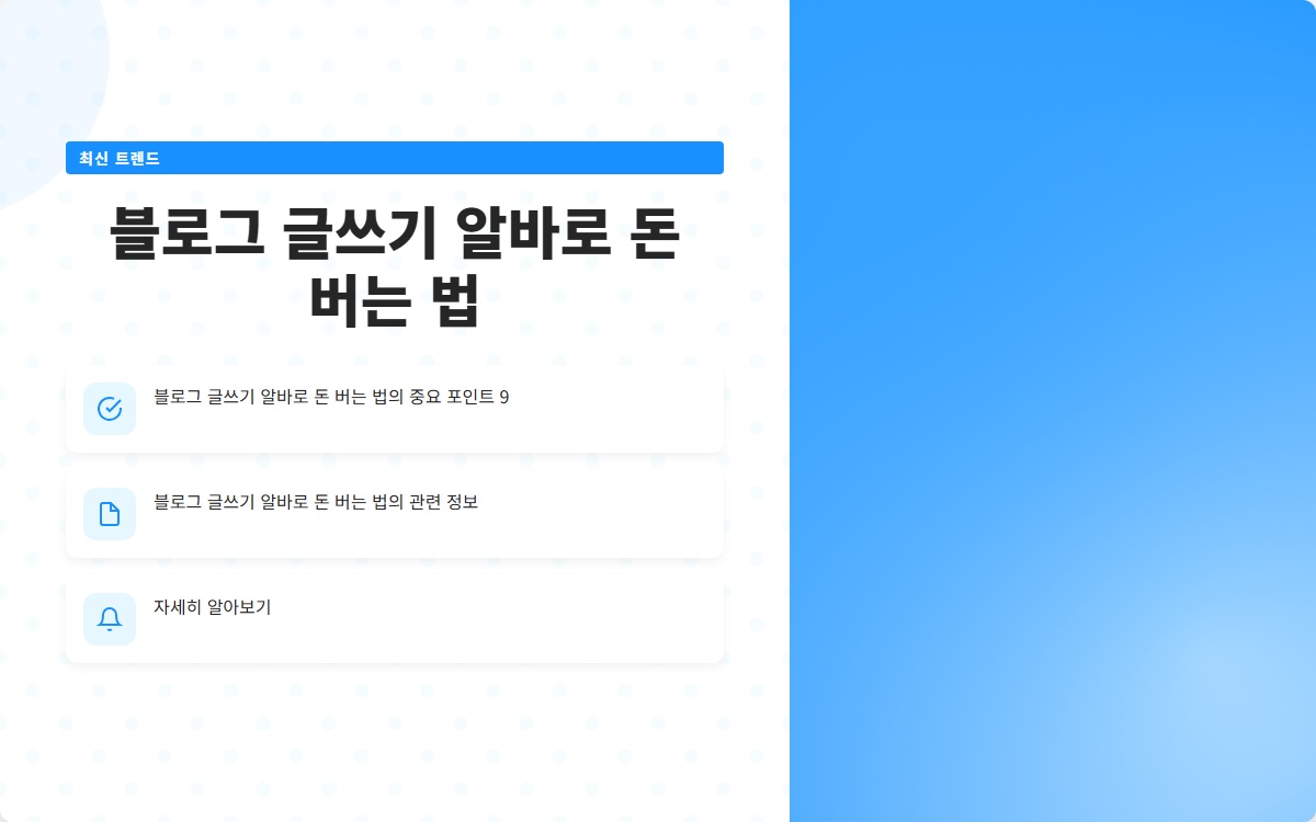 여러분은 집에서 편안하게 글을 쓰면서 수익을 올릴 수 있다는 사실을 알고 계셨나요? 많은 사람들이 블로그 운영을 통해 수익을 꿈꾸지만, 현실적으로 접근하기 어려운 경우가 많습니다. 이번 포스팅에서는 블로그 글쓰기 알바를 통해 수익을 쉽게 창출하는 방법을 소개합니다. 지금 확인해보세요!