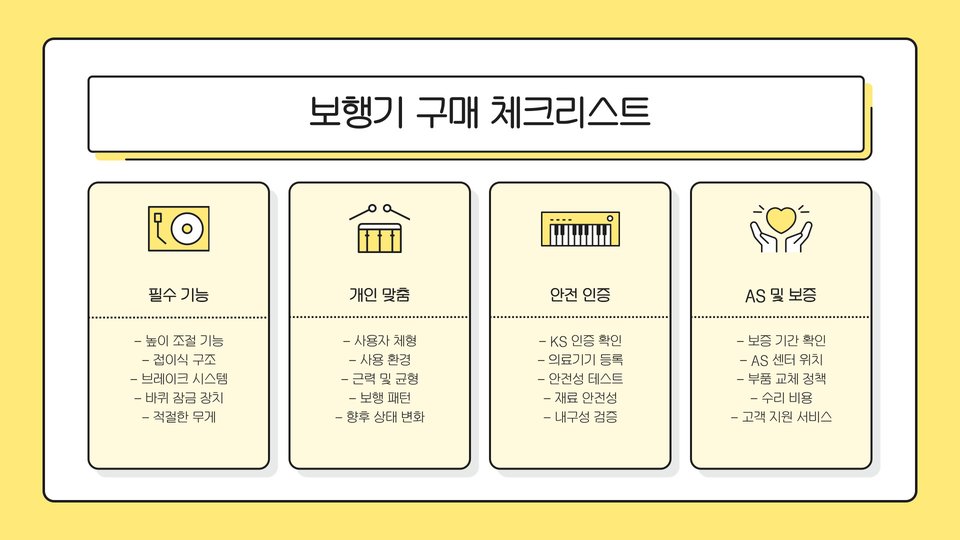 마지막으로, 사용 환경도 고려해야 합니다. 집 안에서 사용하기에 적합한 모델인지, 외부 사용이 가능한지 등을 체크해야 하며, 다양한 이동 조건에 적합한 보행기를 선택하는 것이 바람직합니다.