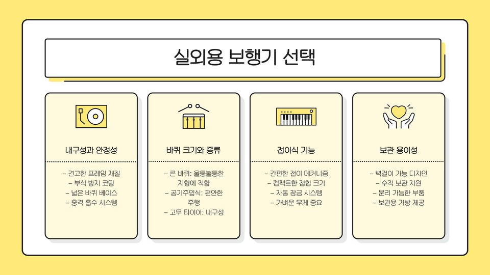또한, 보행기의 설계와 기능성도 중요합니다. 예를 들어, 사용자가 필요로 하는 추가 기능, 예를 들면 브레이크 시스템, 조절 가능한 손잡이, 내구성이 강한 소재 등은 모두 선택의 중요한 요소가 됩니다. 사용자의 필요를 반영한 모델을 선택하고, 가능하면 다양한 제품을 비교해 보아야 합니다.