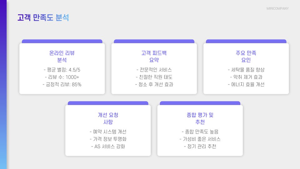 - 세탁기 청소업체 E: 다양한 패키지 옵션으로 고객의 요구에 맞춤형 서비스 제공