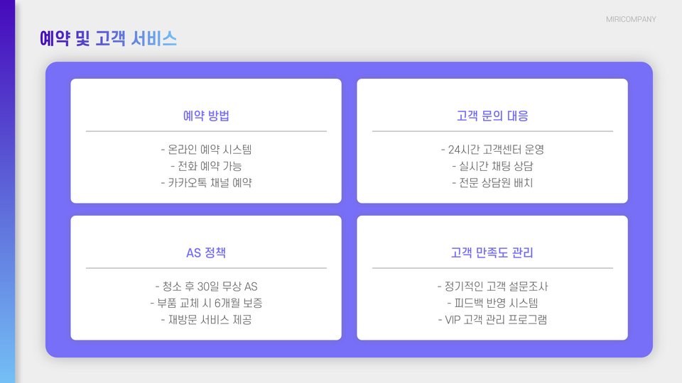 | 클린홈 | 친환경 | 중급 | 신뢰성 높은 서비스 |