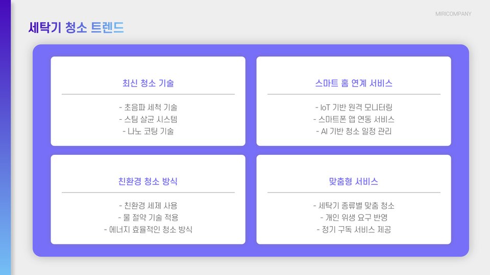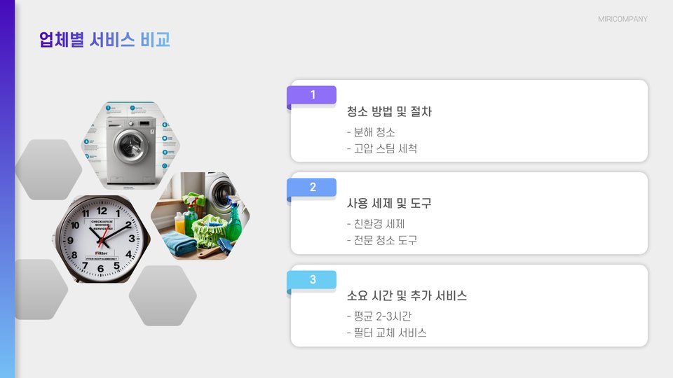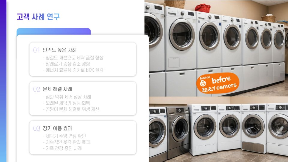 - 세탁기 청소업체 E: 다양한 패키지 옵션으로 고객의 요구에 맞춤형 서비스 제공