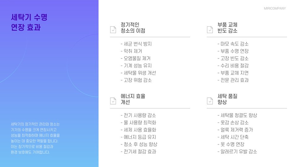 - 세탁기 청소업체 D: 친환경 세제를 사용하여 안전하게 청소