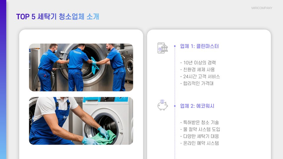 이제 한국에서 추천하는 세탁기 청소업체 TOP 5를 소개하겠습니다: