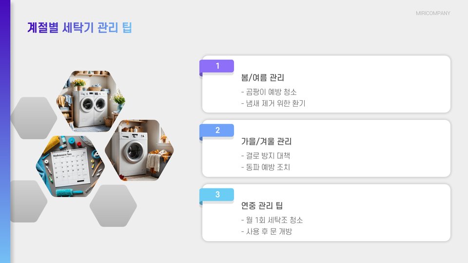- 세탁기 청소 전문업체 A: 고객 만족도가 높고, 합리적인 가격으로 서비스 제공