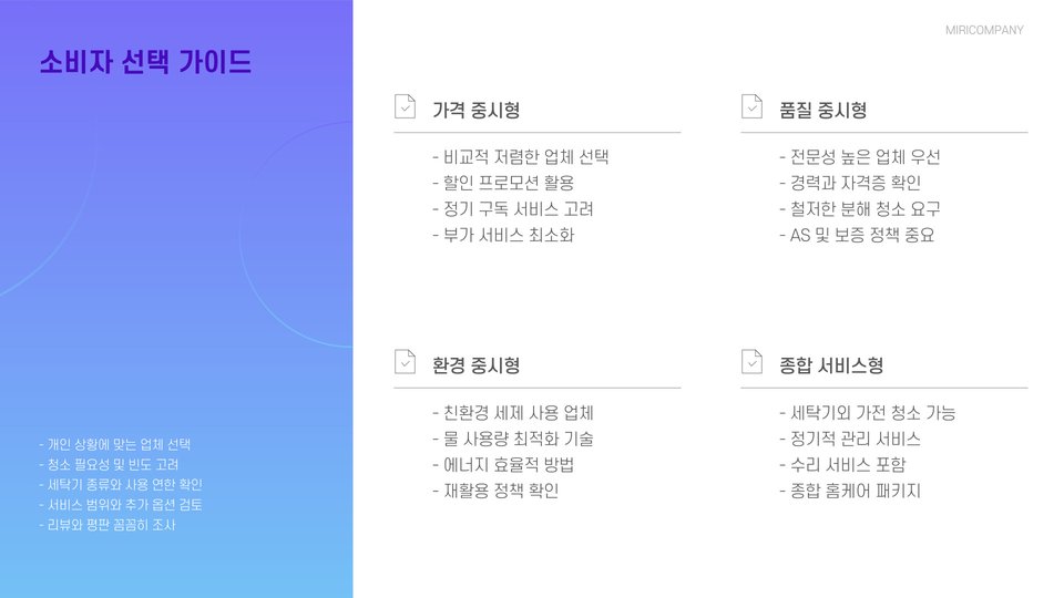 | 클린홈 | 친환경 | 중급 | 신뢰성 높은 서비스 |