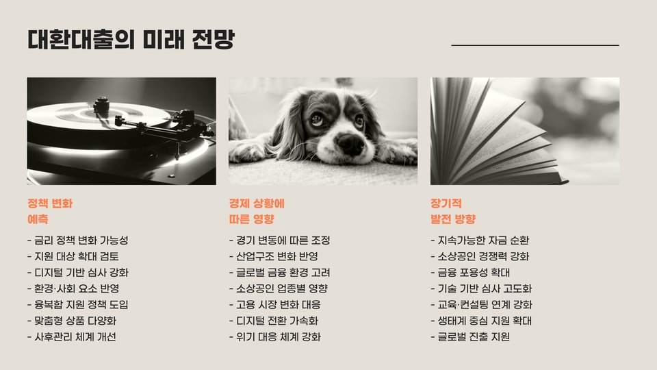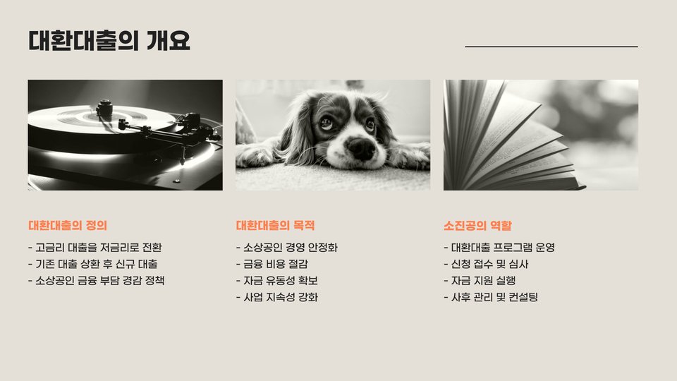 소상공인시장진흥공단의 대환대출은 소상공인들이 경제적 부담을 덜고 사업을 지속할 수 있도록 돕는 중요한 프로그램입니다. 신청 자격과 조건을 충족하고, 필요한 서류를 준비하는 것이 중요합니다.