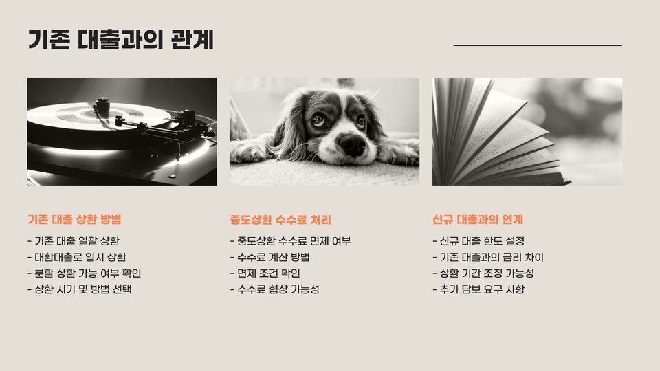 - 단점: 조기 상환 수수료 발생 가능성, 심사 소요 시간