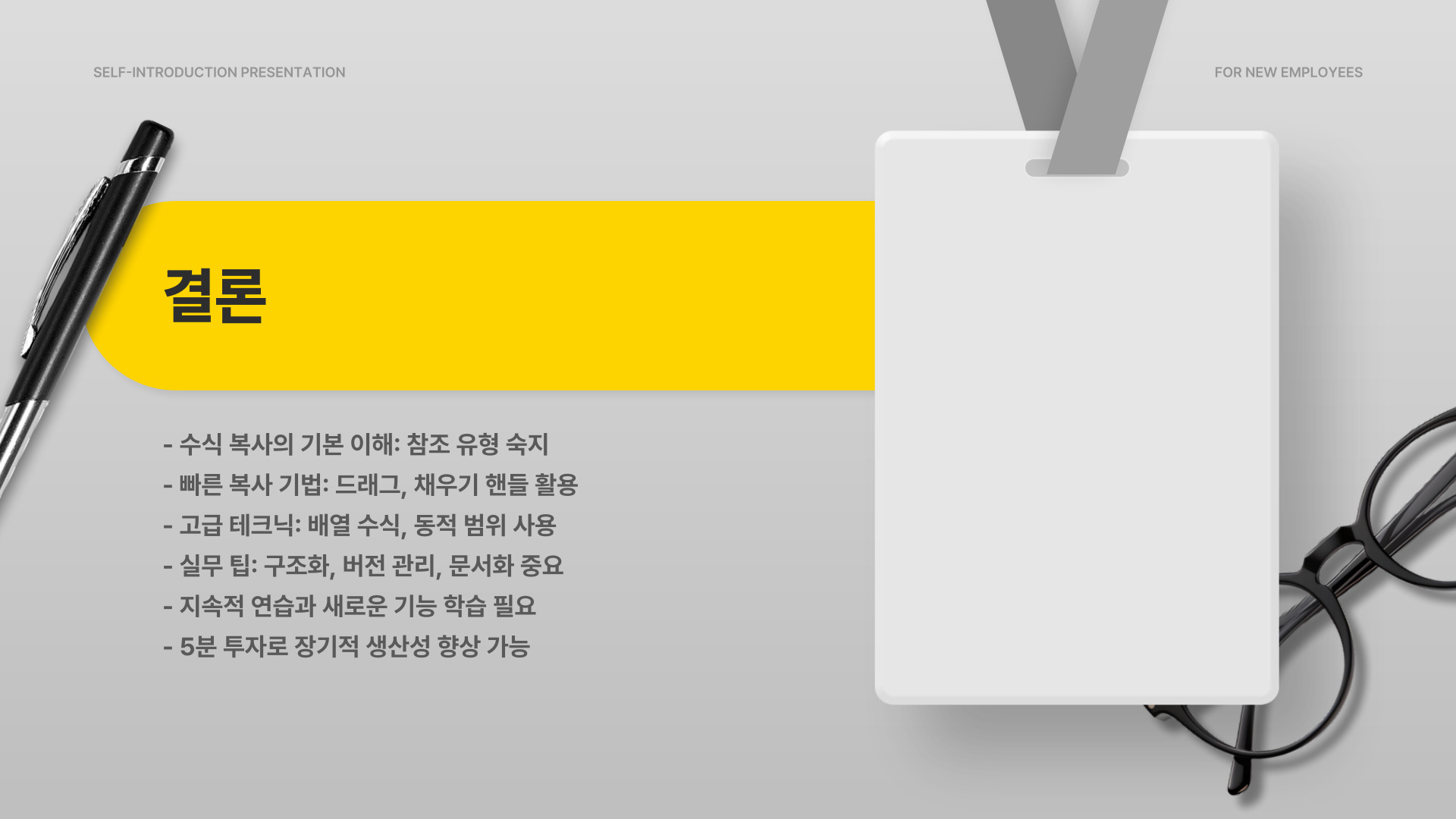 Tags: 엑셀, 수식 복사, 데이터 분석, 효율성, 상대 참조, 절대 참조, 키보드 단축키, 특수 붙여넣기, 엑셀 팁, 업무 자동화