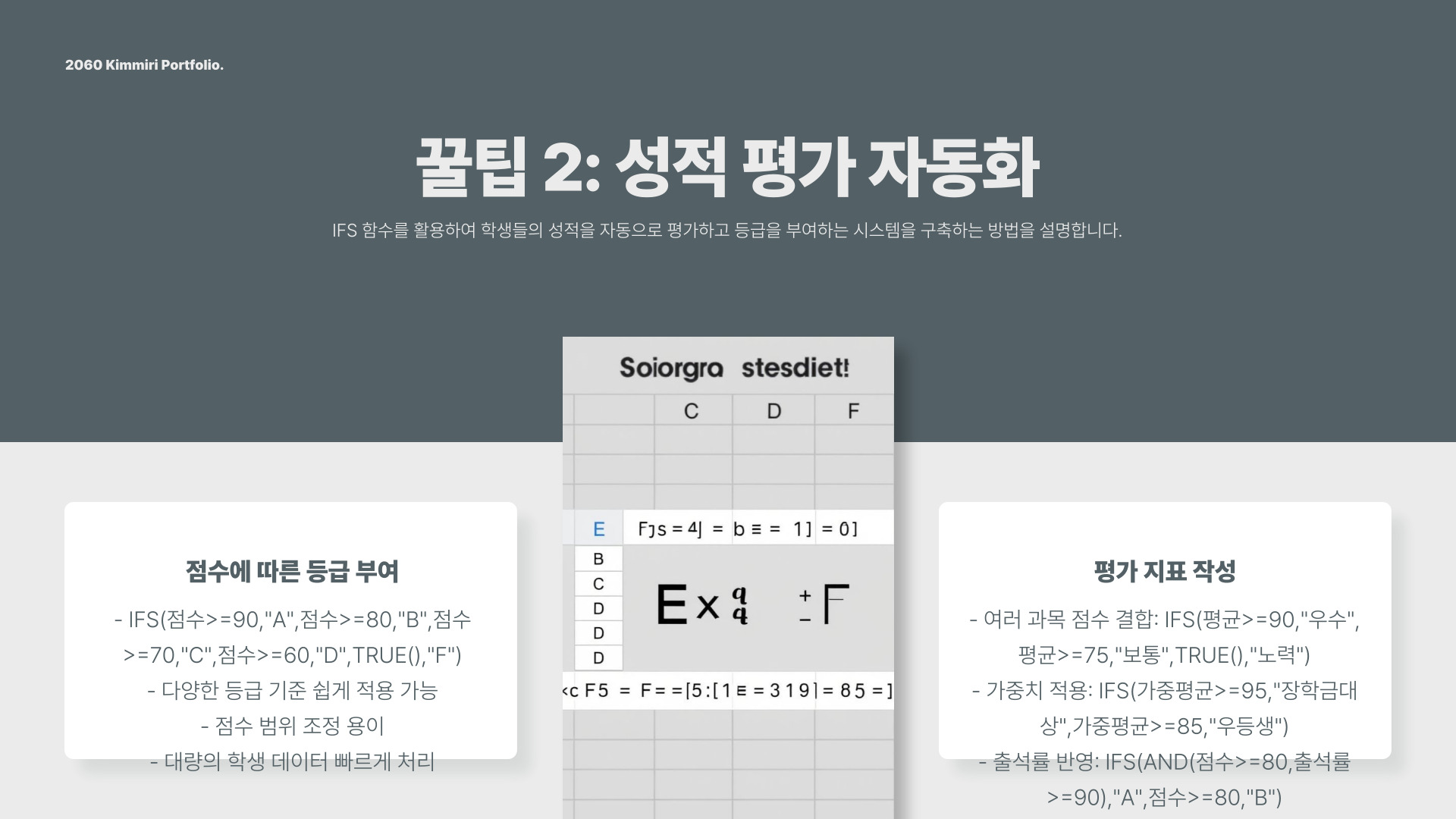또한, 인사팀에서는 직원의 근무 태도나 성과에 따라 등급을 매길 때, IFS 함수를 통해 명확하고 일관성 있는 평가를 할 수 있습니다. 이러한 수식들은 여러 부서가 동시에 이해하고 사용할 수 있는 통일된 기준이 됩니다.