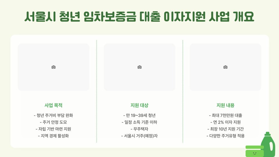 서울시는 청년들의 주거비 부담을 줄이기 위한 다양한 프로그램을 운영하고 있으며, 그중 하나가 임차보증금 대출입니다. 이 프로그램은 서울시에 거주하는 만 19세 이상 39세 이하의 청년들을 대상으로 하며, 주거비용을 보다 효율적으로 부담할 수 있도록 돕고자 마련되었습니다. 청년들이 보다 안정적인 주거환경에서 생활할 수 있도록 지원하며, 경제적 안정을 도모하는 것이 목적입니다.