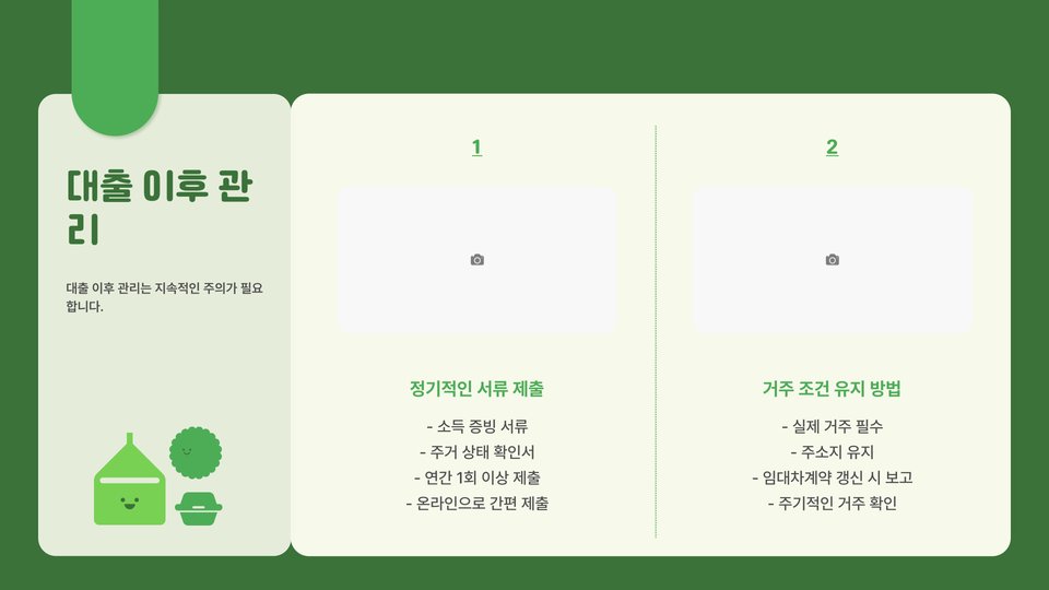 - 필요 서류 준비 (주민등록등본, 소득증명서 등)