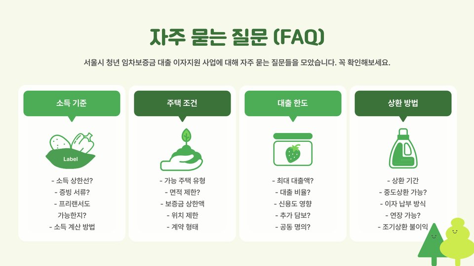 특히, 이번 임차보증금 대출 프로그램은 주거비 부담이 큰 서울에서 청년층의 주거 안정성을 높이는 데 큰 기여를 하고 있습니다. 무주택 세대주이면서 재정적 어려움을 겪고 있는 청년들은 꼭 이 기회를 활용해 보기를 권장합니다. 향후 주거 환경 개선과 서울시의 다양한 청년 정책을 통해 보다 안정적이고 질 높은 주거 환경을 누릴 수 있기를 바랍니다.