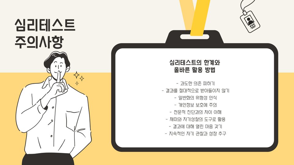 - 심리테스트는 오락적이며 참고용으로 활용하자.