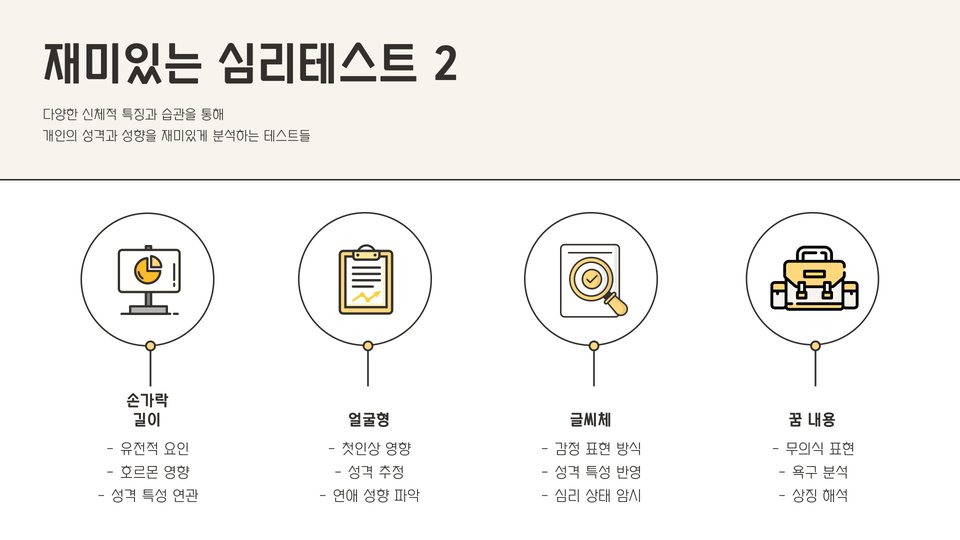 Tags: 심리테스트, 성격검사, 재미, 오락, 친구, 소통, 심리학, 성격유형, 자아탐구, 테스트