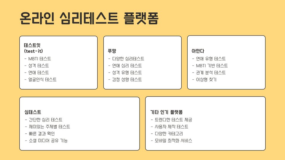 - 심리테스트는 오락적 요소가 강함을 잊지 말자.