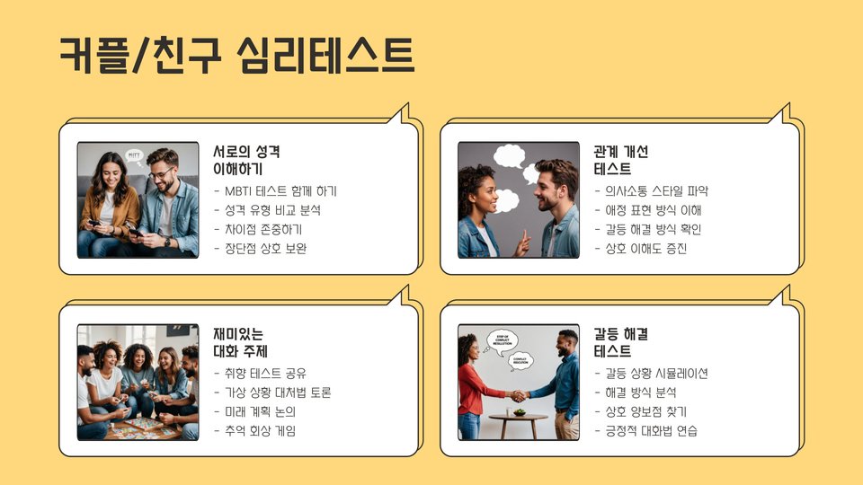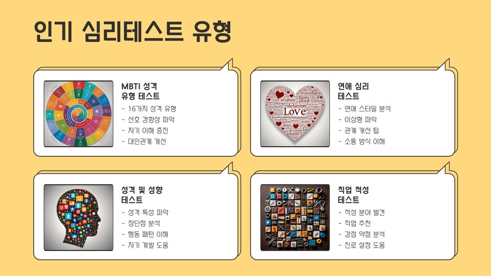 Tags: 심리테스트, 성격검사, 재미, 오락, 친구, 소통, 심리학, 성격유형, 자아탐구, 테스트