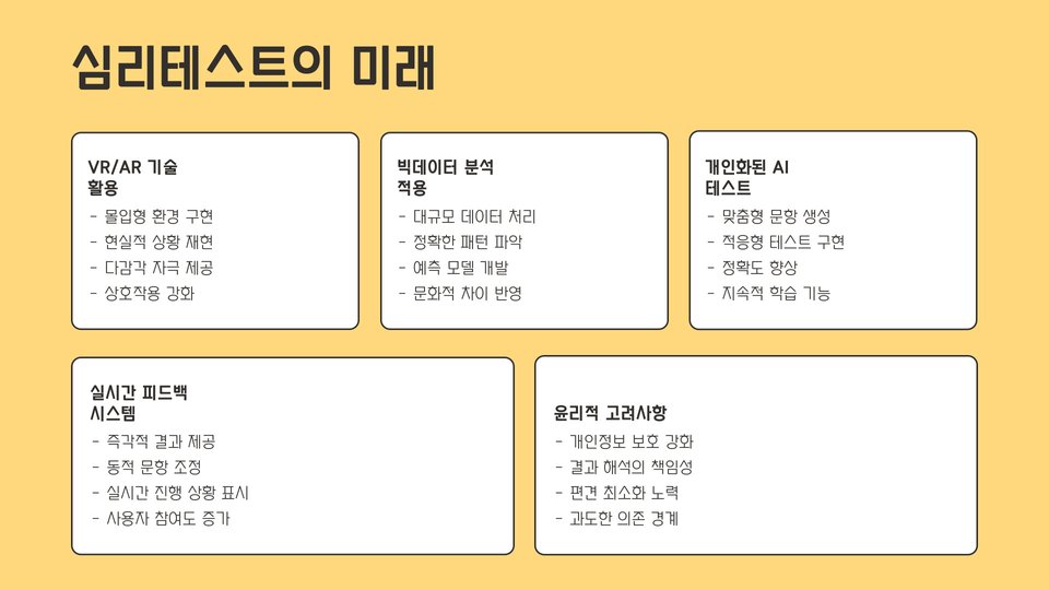 - 결과를 통해 자기 성찰의 기회를 가질 수 있습니다.