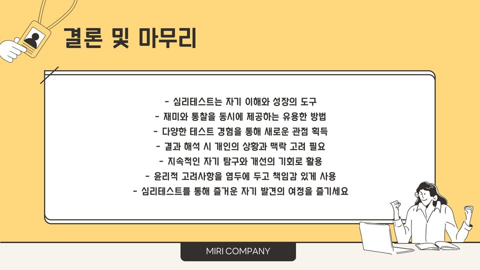 - 심리테스트는 오락적이며 참고용으로 활용하자.