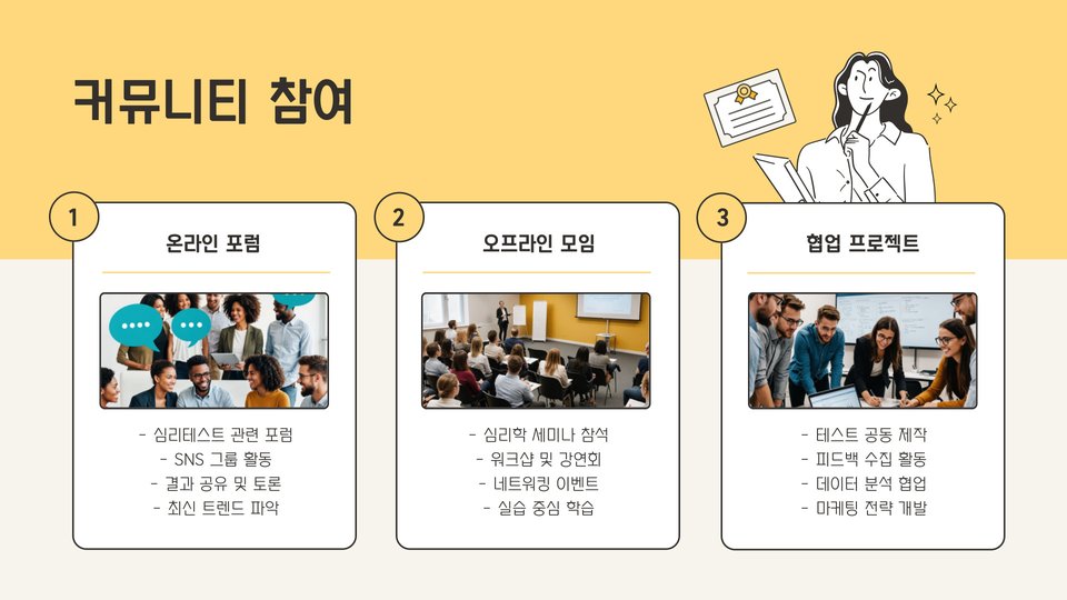 - 다양한 심리테스트를 통해 자신을 이해할 수 있습니다.