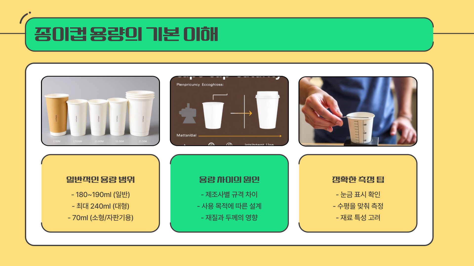 - 종이컵의 기본 용량: 150ml, 200ml, 300ml