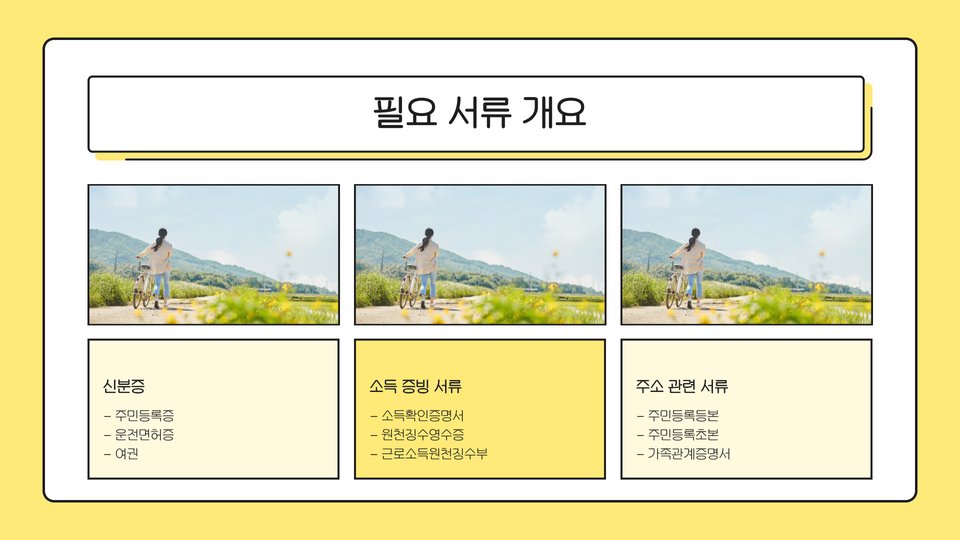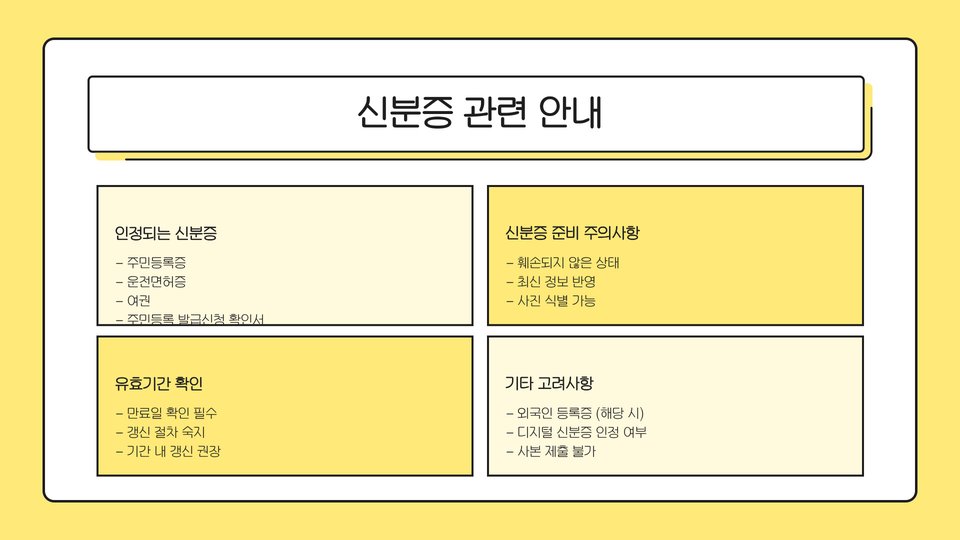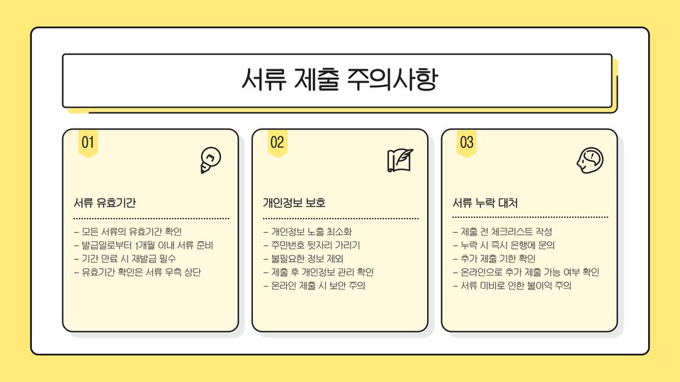 • 필수 서류는 정확하고 최신 정보로 준비해야 함