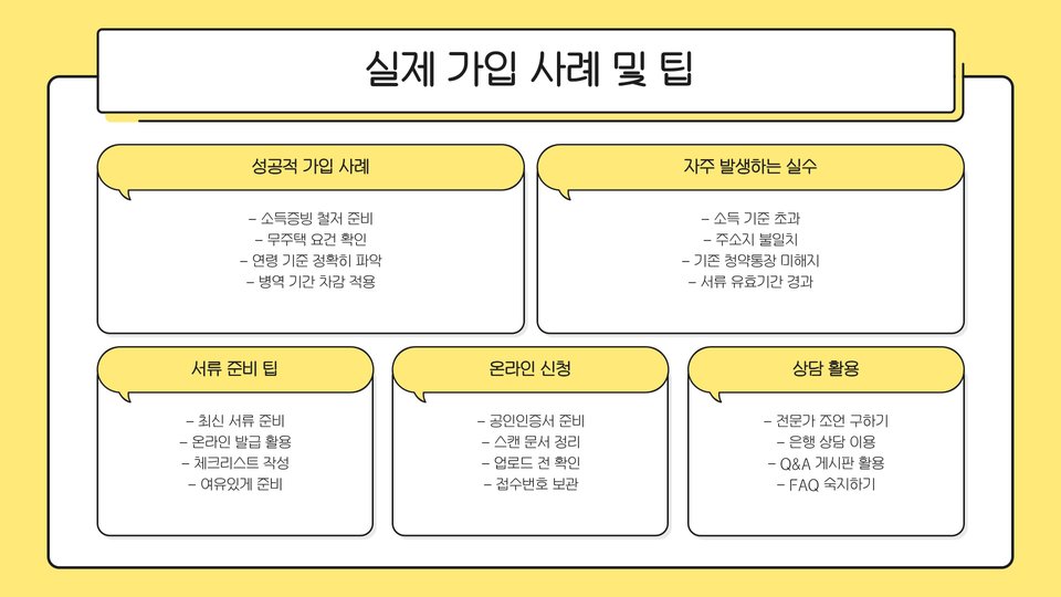또한, 서류 제출 시에는 복사본을 남겨두는 것이 좋습니다. 제출한 서류에 문제가 생길 경우를 대비해 기록을 남겨두는 것이 유용합니다. 서류가 누락되거나 불완전할 경우 청약이 취소될 수 있으므로, 모든 서류를 다시 한번 점검하는 것이 중요합니다.