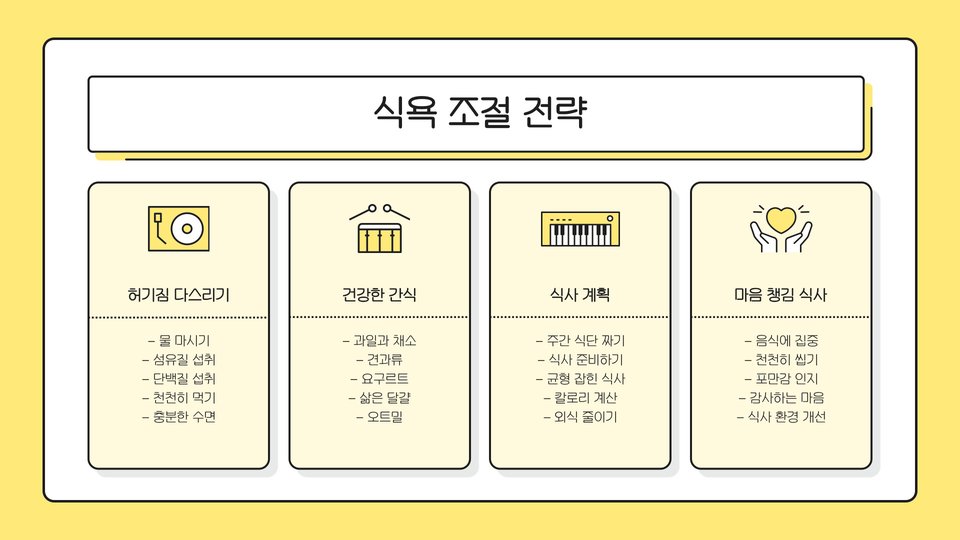 또한, 단백질 섭취를 늘리는 것이 중요합니다. 단백질은 포만감을 오래 지속시켜 무의식적으로 과식을 예방하는 효과가 있습니다. 닭가슴살, 생선, 콩류 등 다양한 식품을 통해 단백질을 보충해 주세요.
