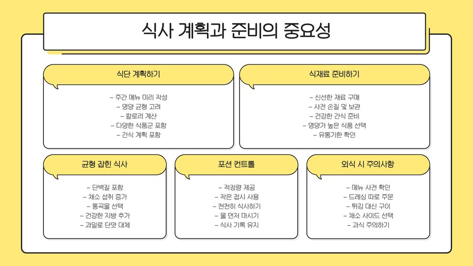 | 균형 잡힌 식단 | 가공식품 줄이고 단백질 섭취 |