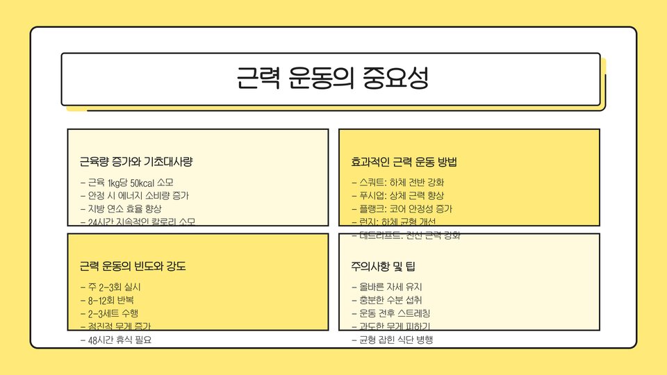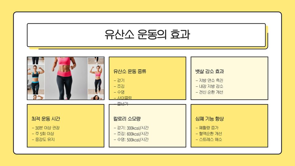 | 유산소 운동 | 주 3~5회, 30분 이상 실천 |