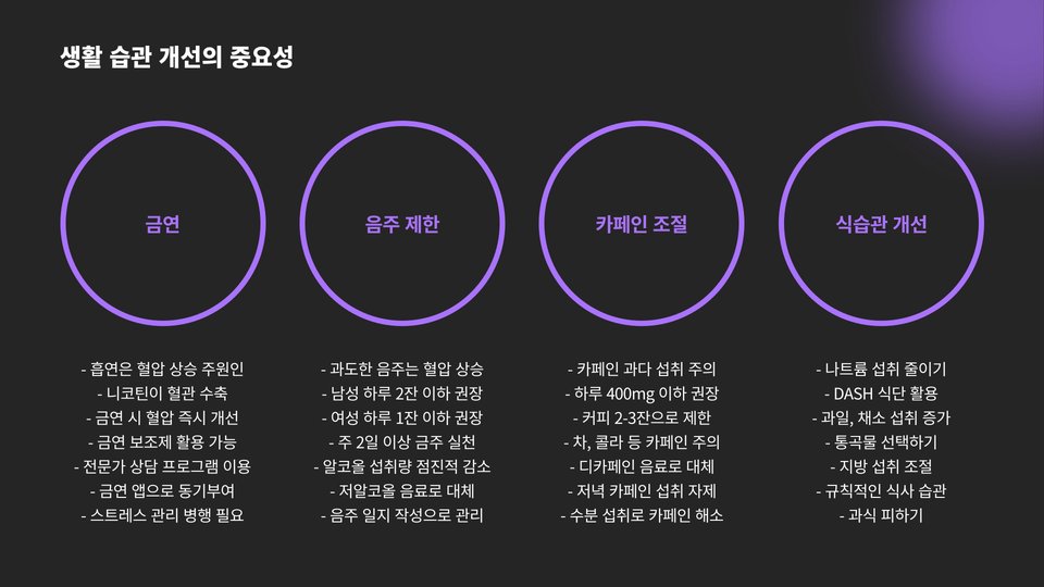 수면의 질을 높이기 위해 잠자리에 들기 전 전자기기 사용을 줄이고, 카페인이 포함된 음료를 피하는 것이 좋습니다. 또한, 편안한 수면 환경을 조성하여 숙면을 취할 수 있도록 노력해야 합니다. 이러한 방법들은 혈압을 안정적으로 유지하는 데 큰 도움이 됩니다.