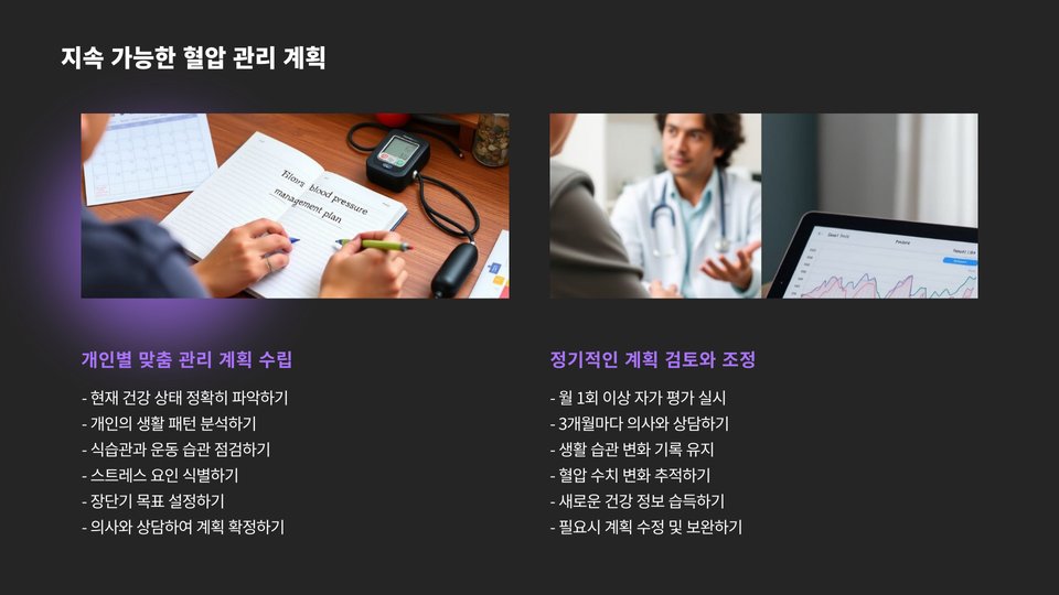 또한, 혈압 측정뿐만 아니라, 체중, 콜레스테롤, 당뇨 등의 건강 지표도 함께 관리해야 합니다. 이러한 종합적인 접근은 건강한 삶을 유지하는 데 필수적입니다. 정기적으로 건강 검진을 받으며 자신의 건강 상태를 체크하는 습관을 기르는 것이 좋습니다.