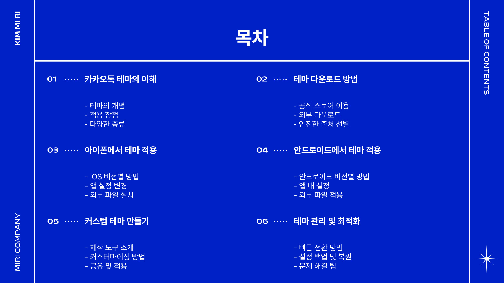 카카오톡에서 테마를 적용하는 것은 나만의 개성을 표현하는 좋은 방법입니다. 기본 테마, 사용자 제작 테마, 맞춤 설정 및 테마 공유를 통해 더욱 풍부한 카카오톡 경험을 누려보세요. 다양한 테마를 적절히 활용하여 매일매일의 대화가 더욱 즐거워질 것입니다.