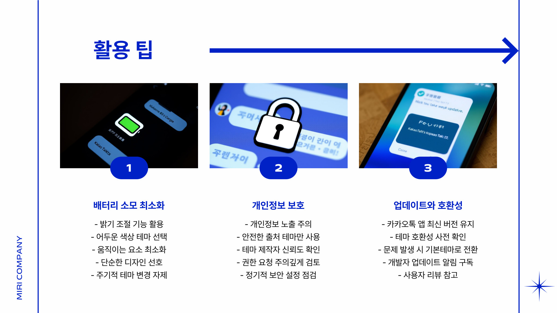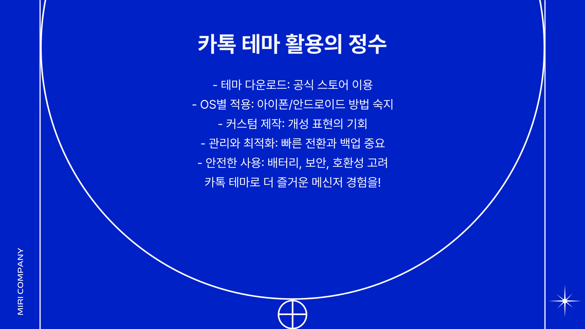 테마를 적용한 후에는, 메시지 전송 화면이나 친구 목록에서 테마가 제대로 적용되었는지 확인해보세요. 때때로, 특정 테마가 일부 기능에 영향을 줄 수 있으므로, 사용 중 불편한 점이 있다면 다른 테마로 변경하는 것이 좋습니다.
