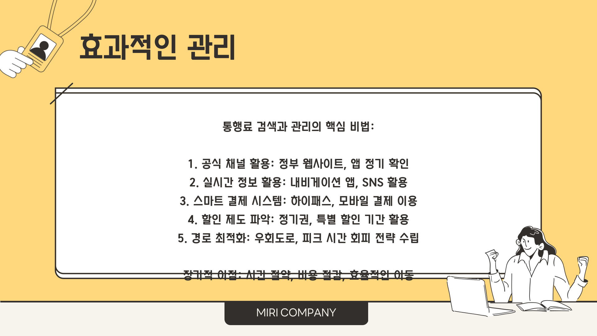 이런 정보를 바탕으로 여행 계획을 세운다면, 통행료를 더욱 효과적으로 관리할 수 있습니다.