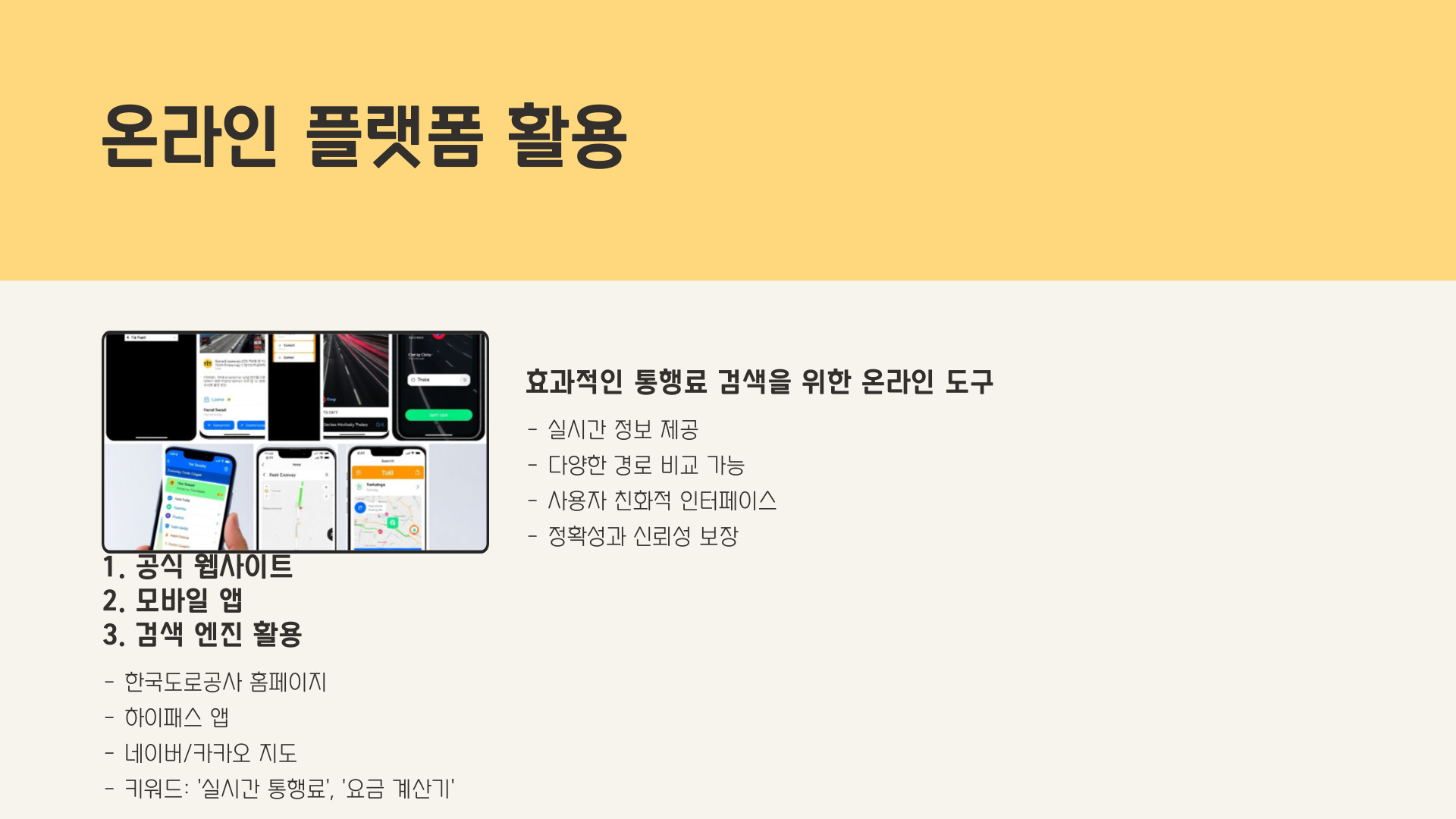 첫 번째 비법은 다양한 온라인 도구를 적극적으로 활용하는 것입니다. 통행료를 검색하기 위한 가장 쉬운 방법은 여러 웹사이트와 모바일 앱을 비교해보는 것입니다. 많은 사이트가 도로별 통행료를 손쉽게 제공하지만, 그 중에서도 사용자 리뷰나 평가가 높은 플랫폼을 선택하는 것이 중요합니다. 이런 플랫폼들은 정확한 정보와 실시간 업데이트를 제공하여 더 신뢰할 수 있습니다.