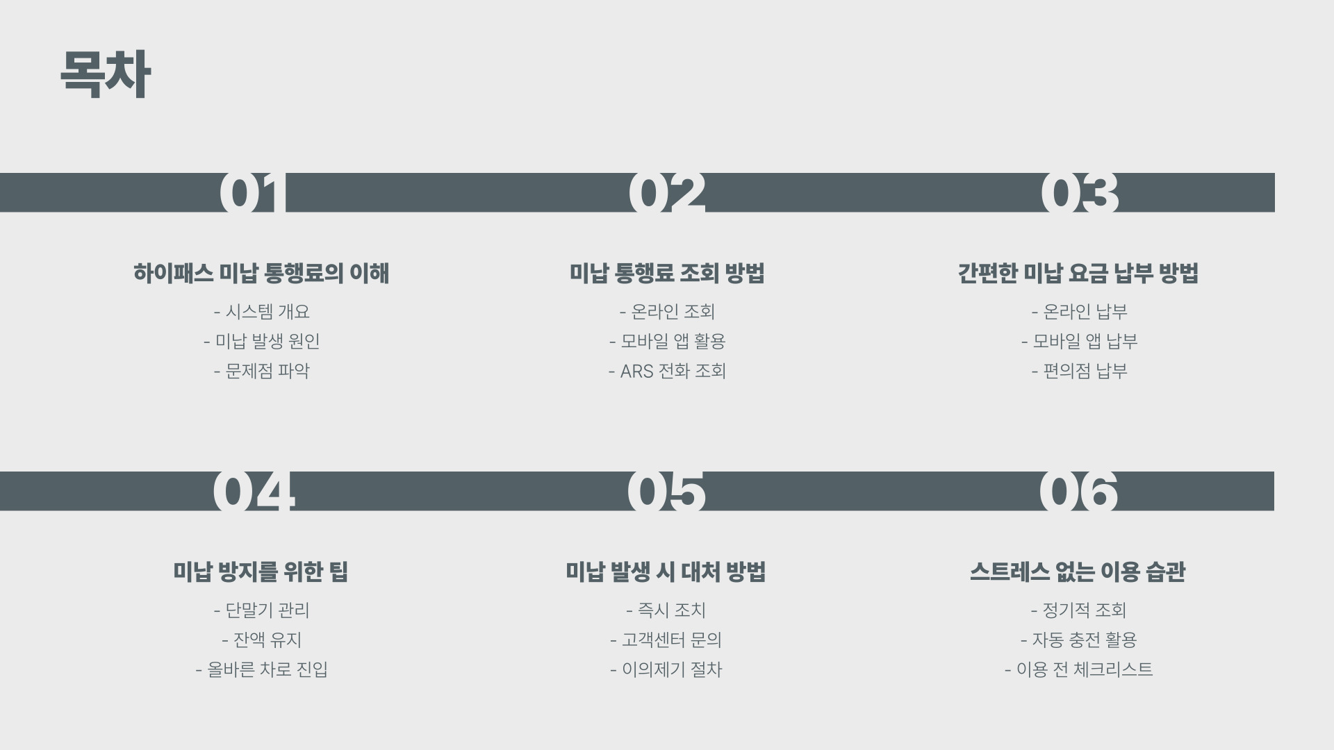 하이패스 통행료 미납조회는 운전자가 통행료를 제대로 납부했는지를 확인하는 중요한 과정입니다. 통행료 미납이 발생할 경우, 신속하게 조회하고 납부하는 것이 필수적입니다. 이를 통해 불필요한 연체료 발생을 예방하고, 원활한 고속도로 이용을 할 수 있습니다.