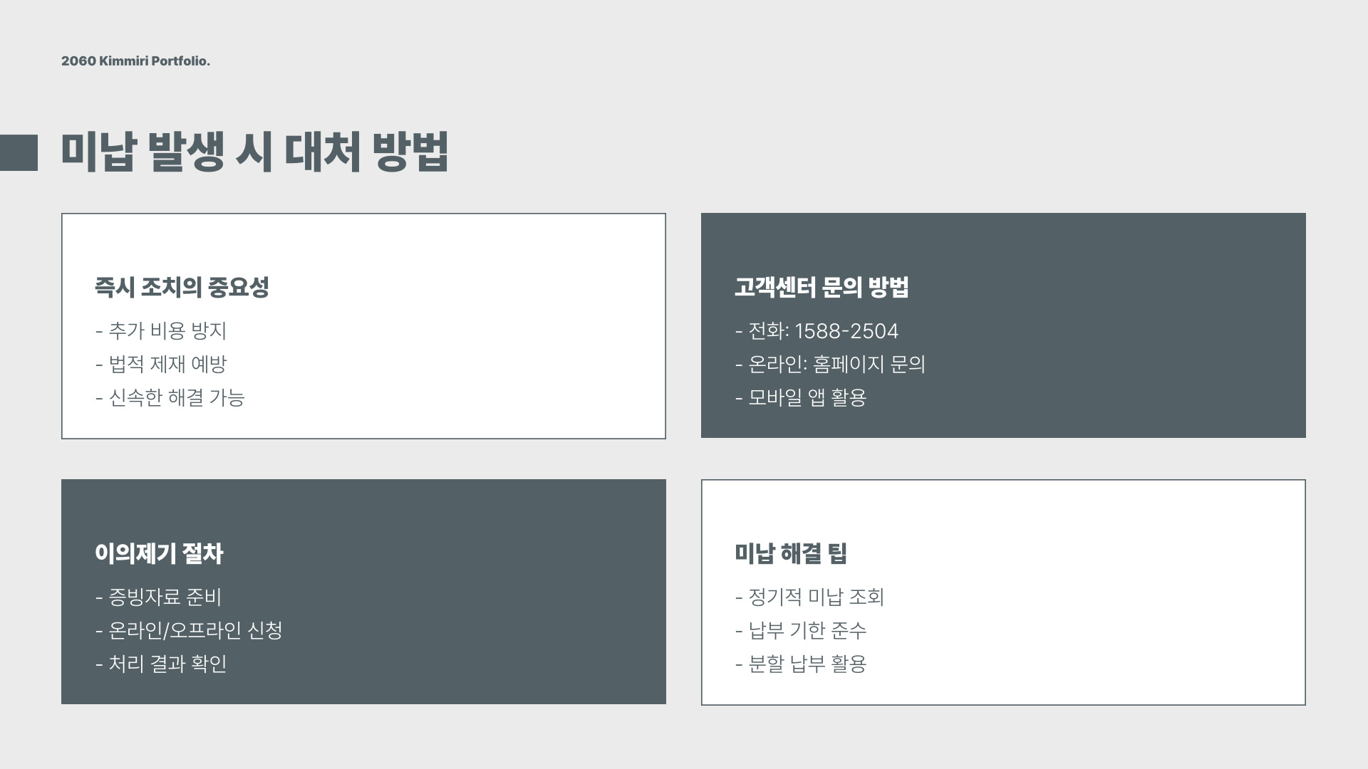 • 미납 시 고객센터 문의 또는 온라인 납부 서비스 이용