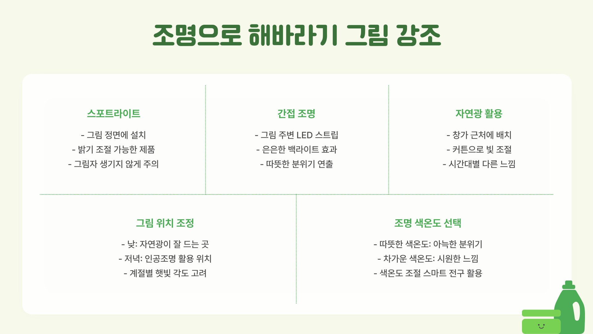 - 그림의 배치와 조명을 고려하여 더 효과적으로 활용하세요.