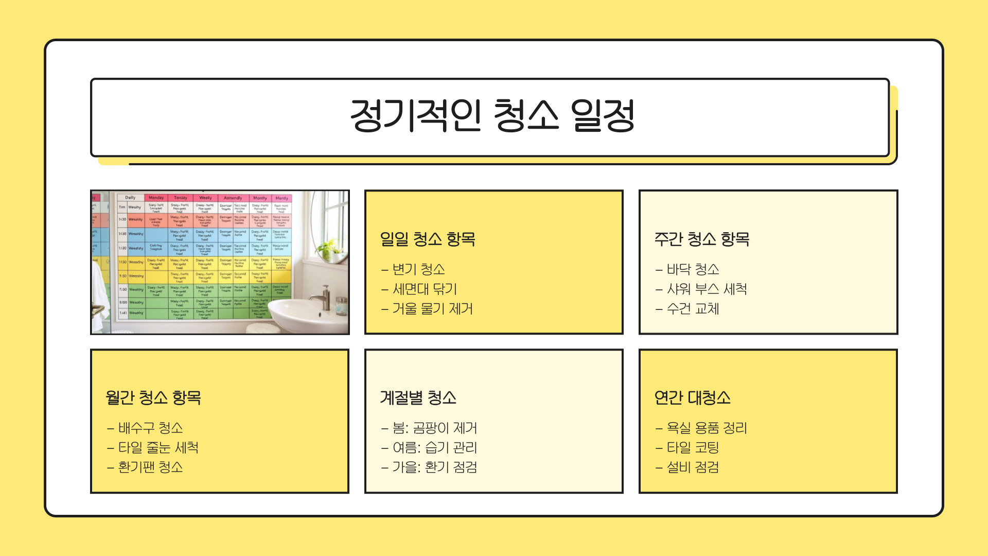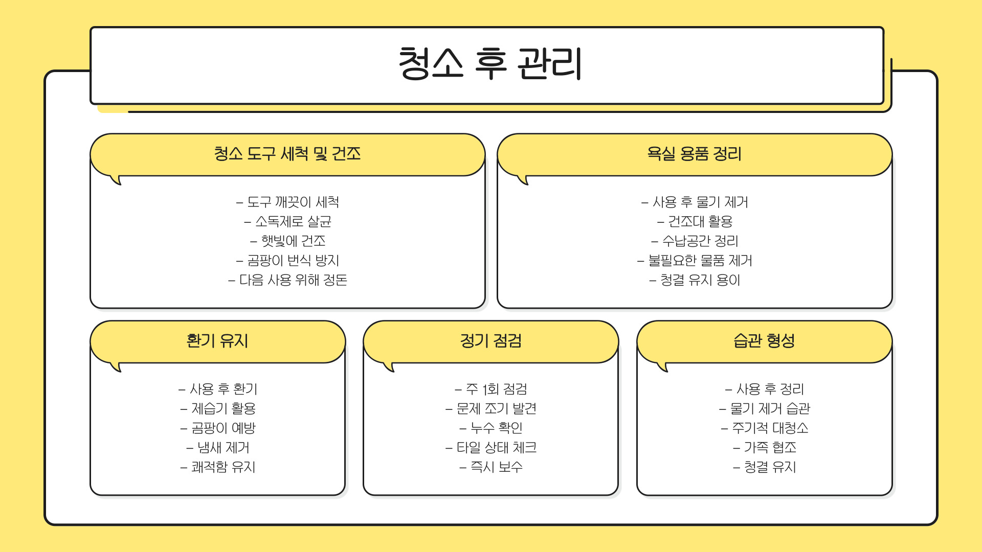 • 화장실 청소는 정기적으로 하여 청결 유지