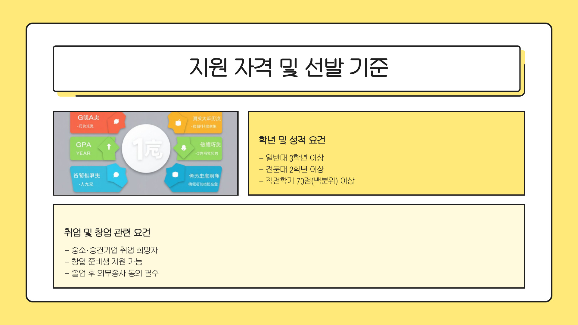 | 신청 자격 | 소득 기준 및 학업 성적 요건 |