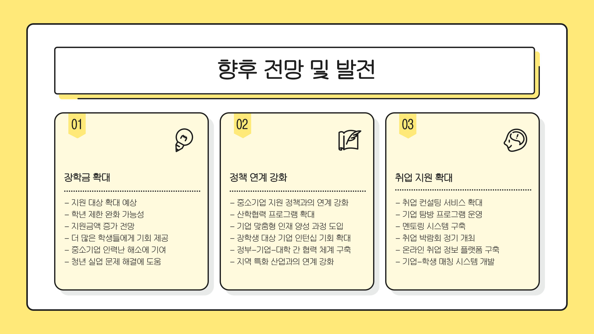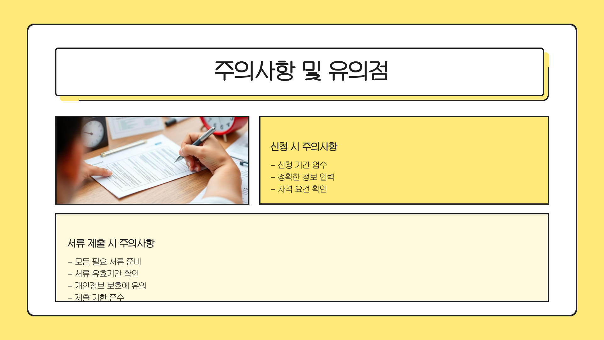 마지막으로, 지원 절차 또한 명확하고 간단합니다. 온라인으로 신청서를 제출하고, 필요한 서류를 첨부하면 됩니다. 지원이 마감되기 전에 미리 서류를 준비하고, 필요한 정보를 체크하는 것이 좋습니다. 많은 학생들이 준비 부족으로 인해 혜택을 놓치는 일이 없도록 하기 위해선 사전 준비가 필수적입니다.