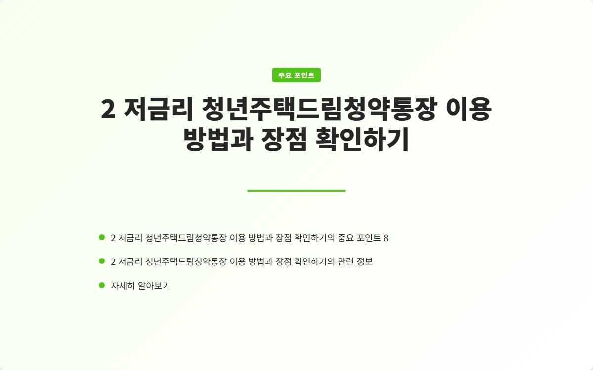 2 저금리 청년주택드림청약통장 이용 방법과 장점 확인하기